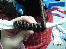 髪の毛を細い束で取ったらねじり、