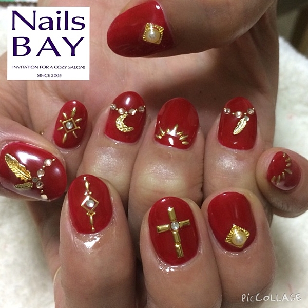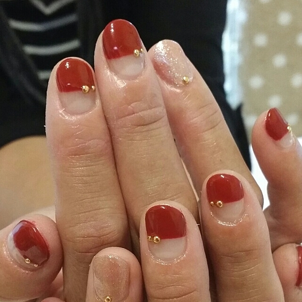 ボルドーのネイルはゴールドや
