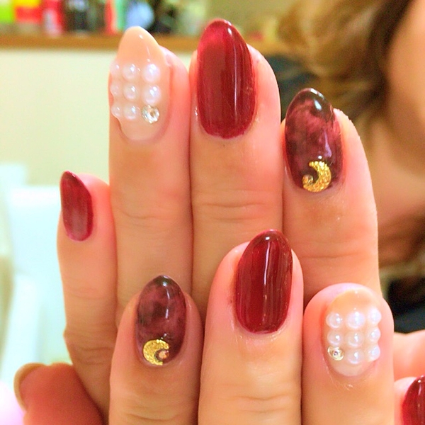 秋は大人スパイスを注入。粋なボルドー✕ゴールドネイルカタログ