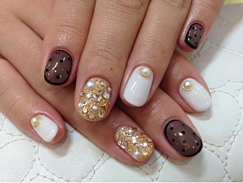 パールやゴールドのパーツで目立つ指先に。