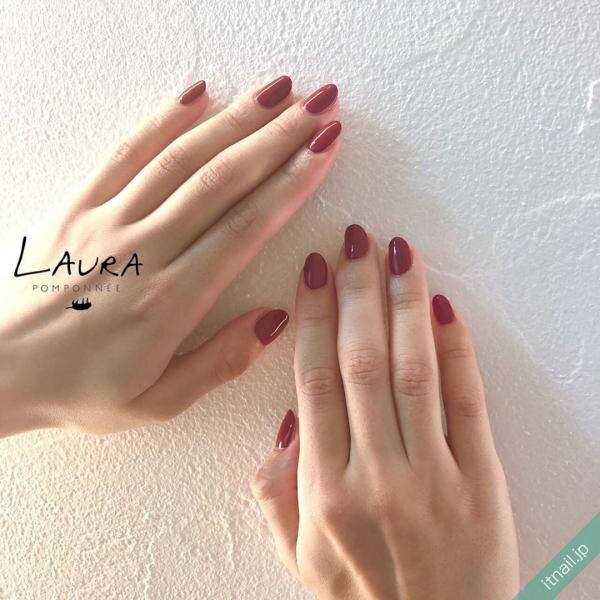 赤色に少し黒を混ぜたような深みのある色が素敵なストロベリーカラーは、ワンカラーネイルにすることで指先からの美人度が増します。ダイレクトにその色を楽しみたい方におすすめで、オンオフ問わないのも嬉しいポイントです。