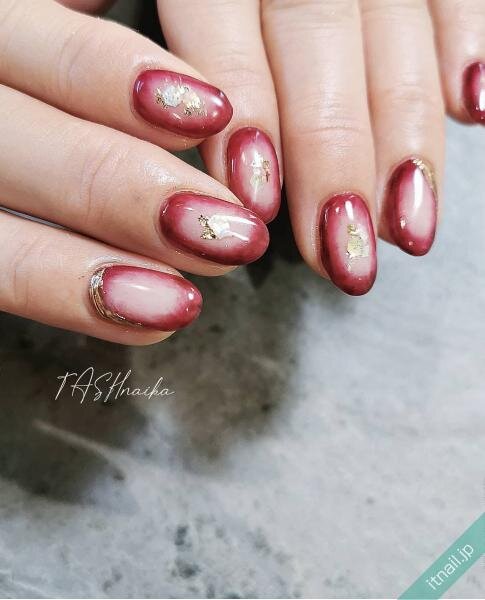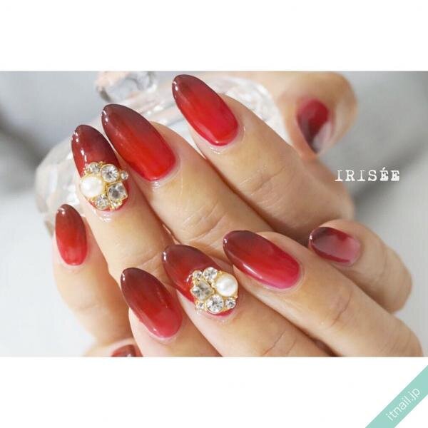 鮮やかな赤色をベースにしながら、爪の先端にダークな色を入れたグラデーションネイルは、熟していくストロベリーをイメージさせてくれるようなデザインです。色の移り変わりがおしゃれで、ダークな色によって指先の存在感が増します。