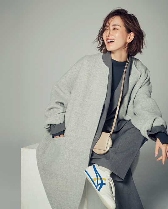 ジャケパンやコートといったトラッドなアイテムも、さすがUAのノウハウがあるブランドだから、シルエットやタックなど細かい処理がキレイ。コート ¥19,990 ジャケット ¥13,990 パンツ ¥6,980 ニット ¥5,990(すべてCITEN/ユナイテッドアローズ カスタマーサービスデスク)スニーカー ¥13,200(オニツカタイガー/オニツカタイガー お客様相談室)バッグ ¥26,400(ディーゼル/ディーゼル ジャパン)靴下/スタイリスト私物