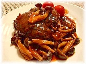 楽天レシピ:「♪♪絶品★煮込みハンバーグ~きのこソース~♪♪ 」より