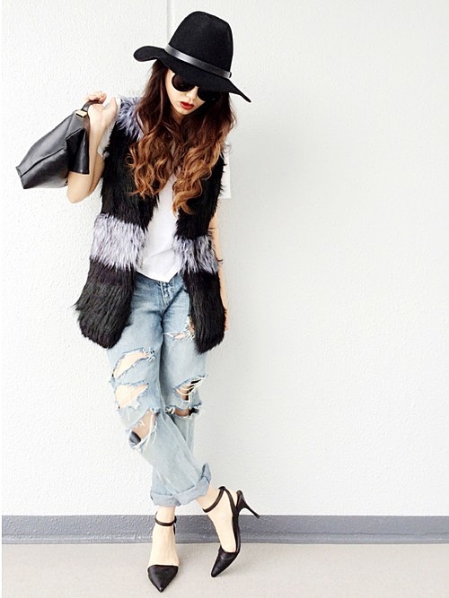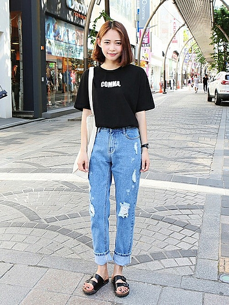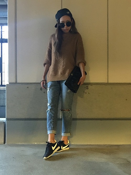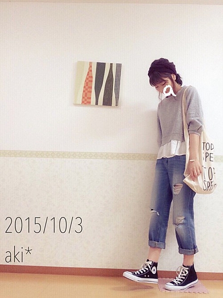 適度に肌見せをしながらゆったりデニムで