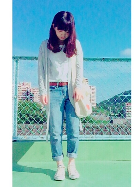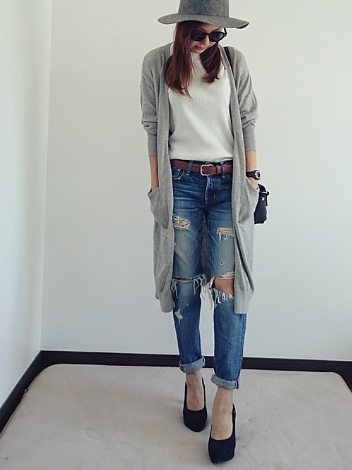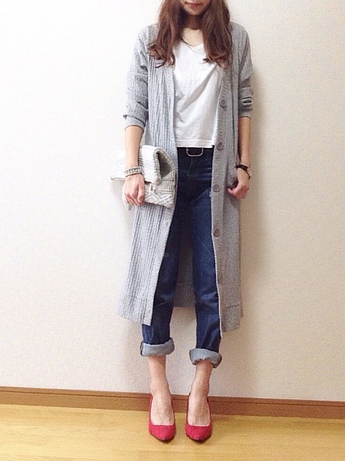 流行りのロングカーディガン。