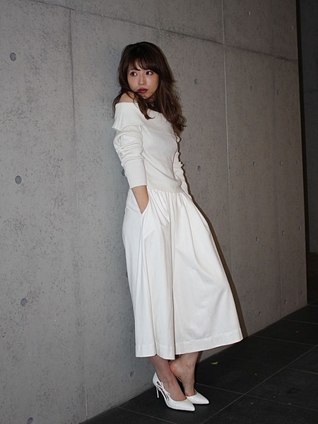 オフショルダーの女性らしいKNIT TOPです。晩夏の時期から着て頂けるニットアイテムです。タイトBODYなので体のラインがきれいに出るアイテムです。