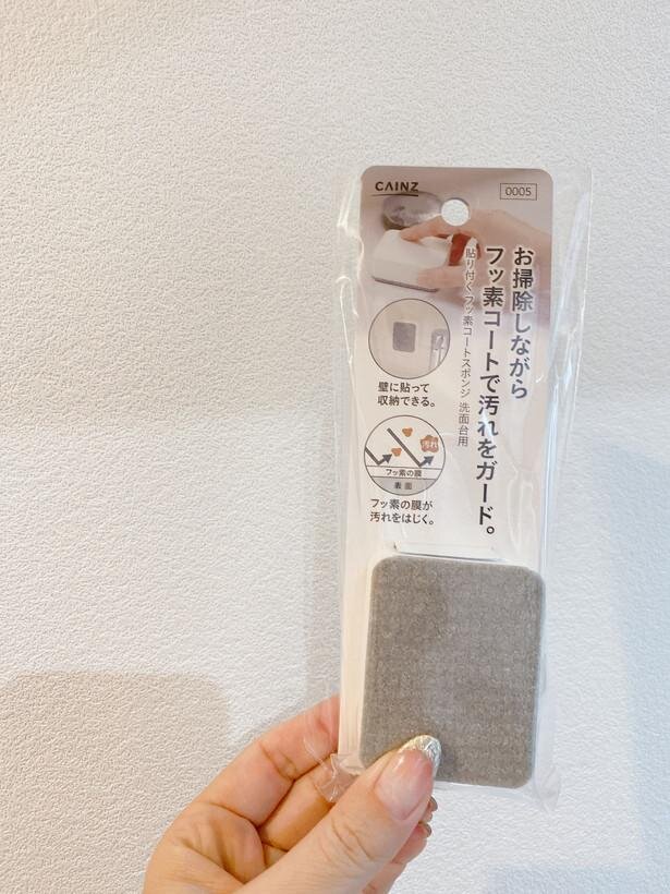 カインズホームで購入した『お掃除しながらフッ素コートで汚れをガード』というスポンジ。お値段は298円(税込)です。ワンコインの企画ですがお釣りも来ちゃうお得ぶり。このスポンジの何が素晴らしいかというと…
