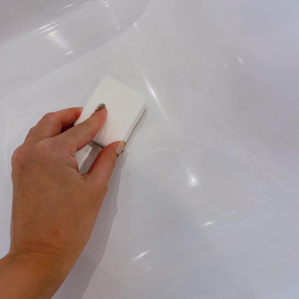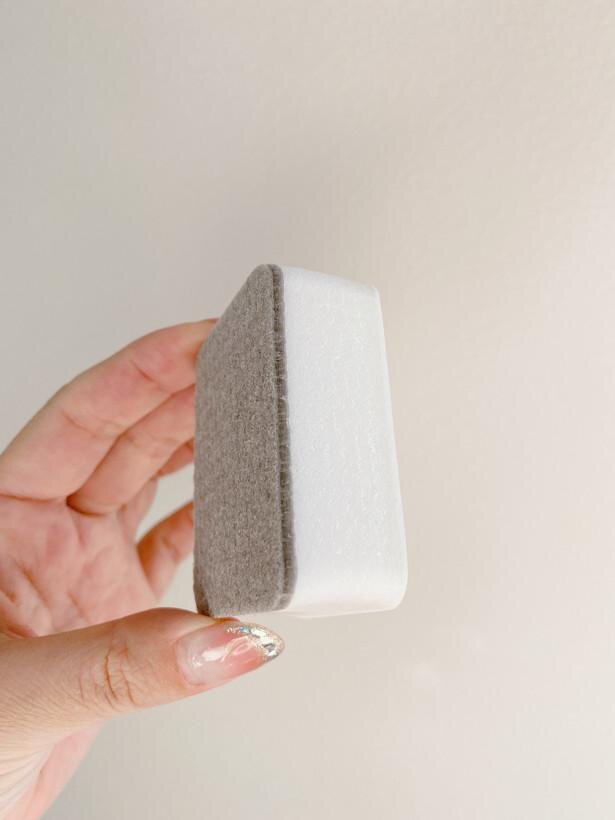 フッ素コートというのはフッ素の成分を塗布し、コーティングするという事。このスポンジ自体にフッ素が画像でいうとグレーのアクリル不織布部分に含侵されているので別に薬剤は必要なし。こするだけでコーティングできてしまうのです!汚れを落とすだけではなく、コーティングできるなんて優れものすぎる!