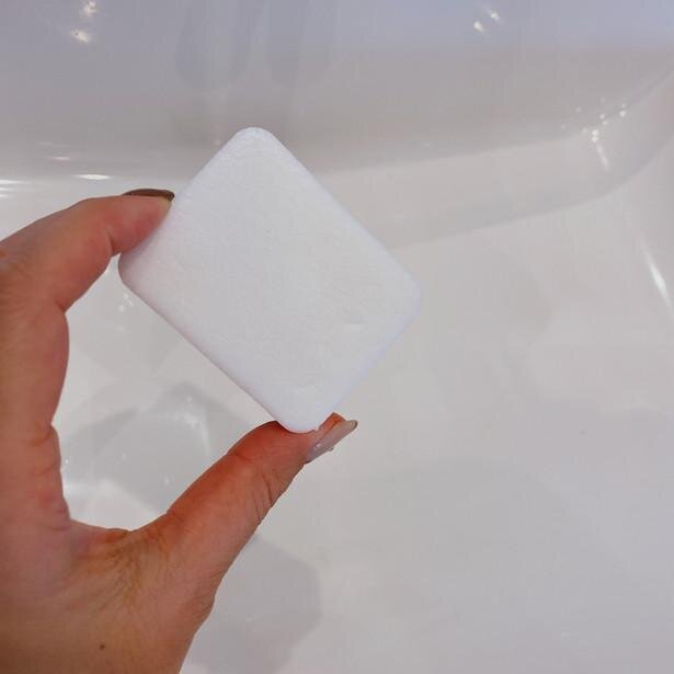 一見、「え?スポンジで298円?しかもサイズ小さいし、高いな・・・」って思いがちですが、(幅4.8cm×奥行6cm×高さ2.3cm)実はこれ…1個で3カ月ほど使えちゃいます!なので1日換算すると・・・驚くなかれ1日たった3円!!で洗面所のシンクを綺麗に美しく保つことができちゃいます!我が家は1階と2階のシンク用に2個購入しました!