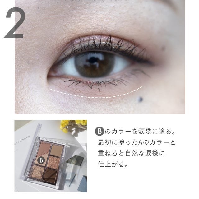最近はマットのシャドウを使って涙袋を作るのが主流。よりナチュラルで抜け感のあるアイメイクが仕上がります。