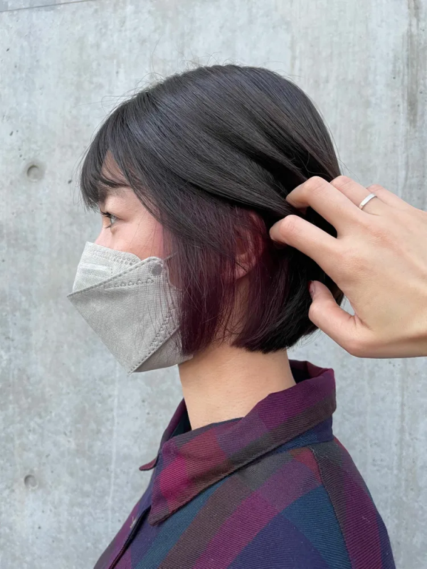 全体に使用すると暗めでも派手に見えてしまうカシスピンクも、黒髪見えする暗色の内側に入れるインナーカラーならナチュラルな雰囲気に仕上がります。