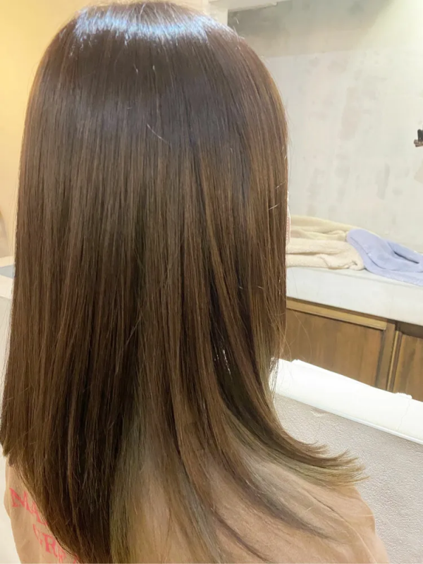 インナーカラーが少し明るめでもベースとのコントラストが少ないと派手に見えないので、大人女性にもチャレンジしやすいヘアカラーになりますね。