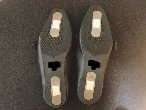実際につま先とかかとにペタッと縦向きに張り付けてみました。出かける際にすぐ実践できるので面倒な準備も要りません。通常の道を歩いてみましたが、履き心地は特に変わりませんでした。