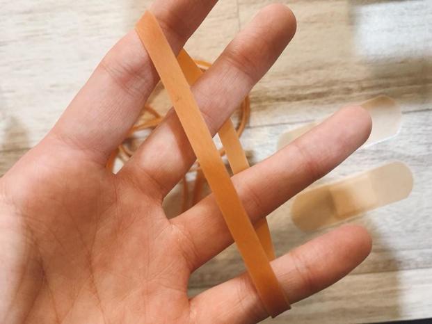 使うのは「バンドエイド」と「太めの輪ゴム」