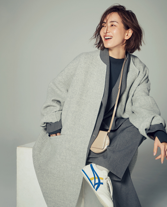 ジャケパンやコートといったトラッドなアイテムも、さすがUAのノウハウがあるブランドだから、シルエットやタックなど細かい処理がキレイ。コート ¥19,990 ジャケット ¥13,990 パンツ ¥6,980 ニット ¥5,990(すべてCITEN/ユナイテッ ドアローズ カスタマーサービスデスク)スニーカー ¥13,200(オニツカタイガー/オニツカタイガー お客様相談室)バッグ ¥26,400(ディーゼル/ディーゼル ジャパン)靴下/スタイリスト私物