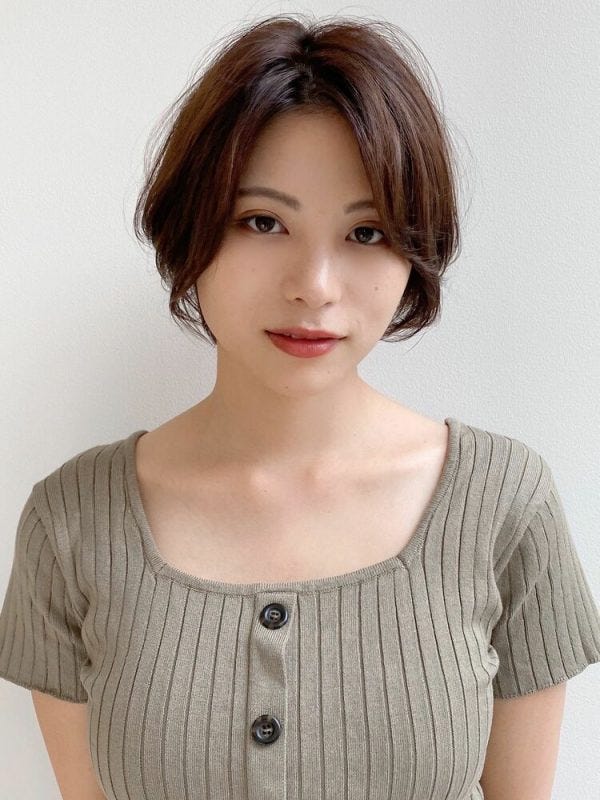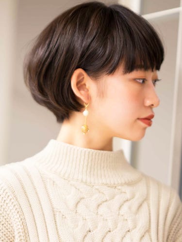 続いては、大人世代にも人気が高いコンパクトなシルエットのショートボブ。前髪ありが可愛いですね。