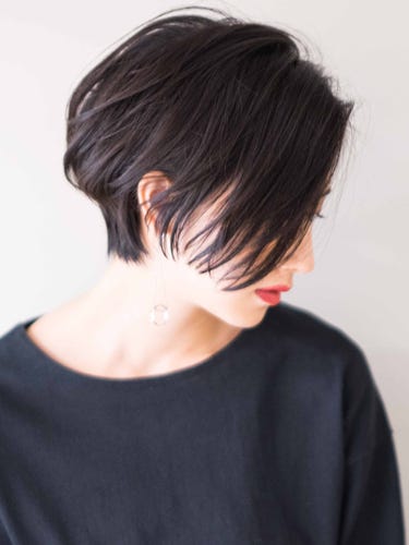 前髪が長めのショートボブは、大人っぽくジェンダーレスな雰囲気が人気です。