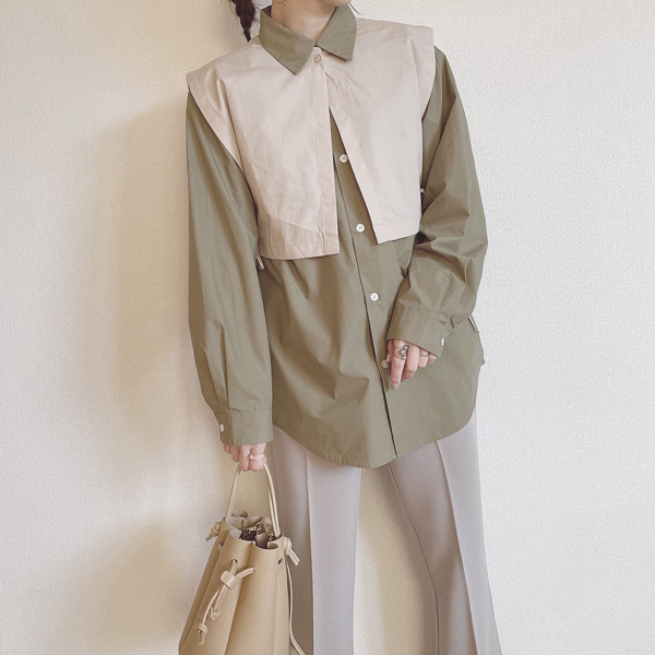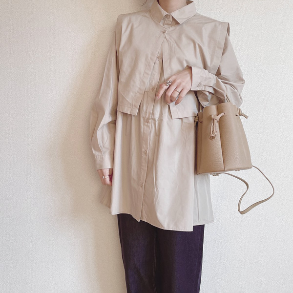 ベストをレイヤードしたようなデザインで、ベスト部分を外せば、シンプルなチュニックシャツとしても使用できますよ。