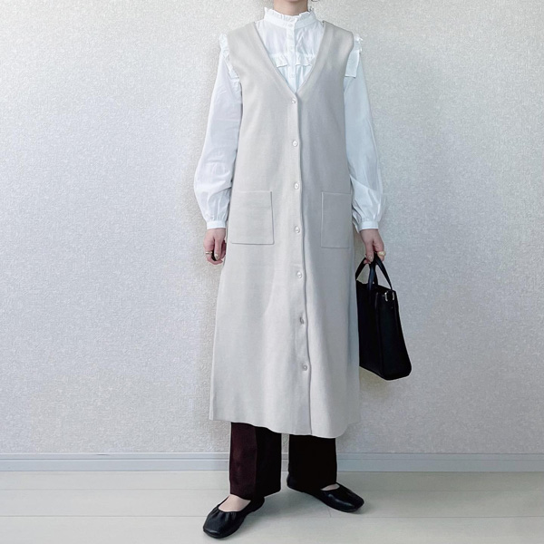 ベストを取り外して、お手持ちのシャツやニットの上に合わせれば、印象をガラッと変えられて鮮度アップ!