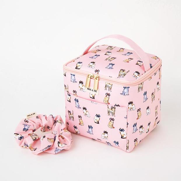 付録はバニティポーチ&シュシュの2点セットです。猫のモチーフがあしらわれたデザインです。フロントにはブランドロゴのタグが付いています。シュシュはポーチと同じ猫柄です。