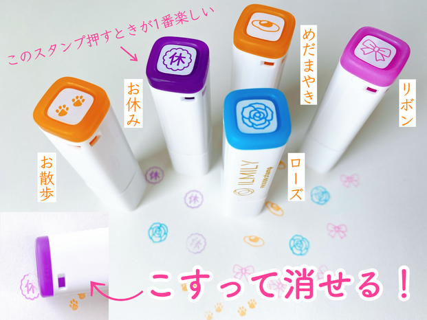 今、私が1番ハマっている文具がスタンプです。パイロットの「ILMILY(イルミリー)」のフリクションスタンプは、洗練されたデザインが楽しめるので気に入っています。手帳やノートに押すだけで華やかになるし、こすって消せるのも便利。限定品のため、見つけたら早めにゲットするのがおすすめです。このスタンプのおかげで、スケジュールにメリハリをつけられるようになりました。