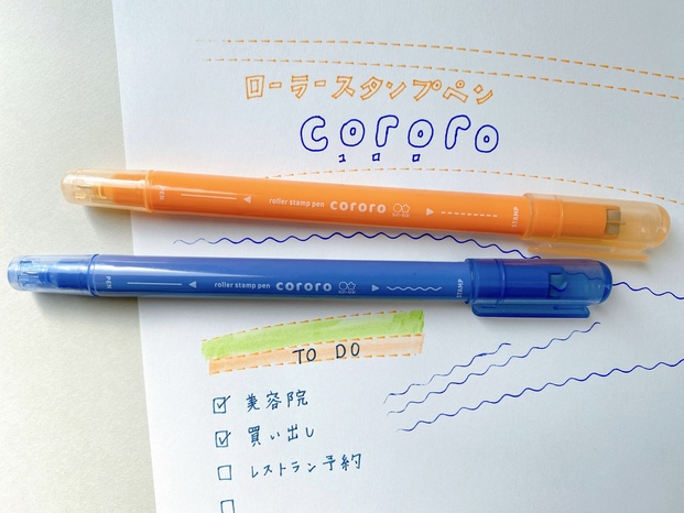 発売されてばかりの「ローラースタンプペン cororo(コロロ)」は、名前の通りニードルペンとローラースタンプがひとつになった画期的な筆記具です。