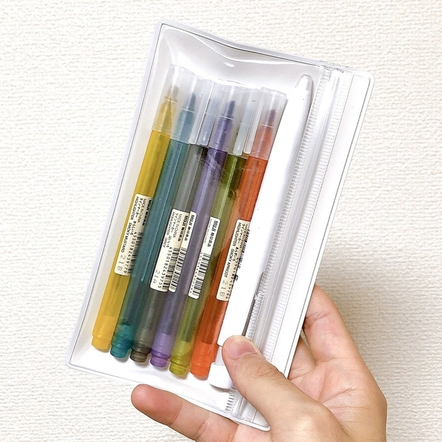 ラインマーカー6本とボールペンがコンパクトに収納できます。