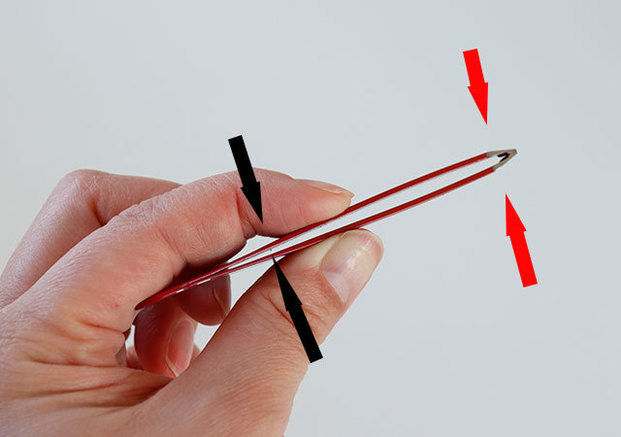 そこでそんな悩みを解決してくれるのがこちらの『逆作用ピンセット』!なんと指に力を入れると先端が開き…。