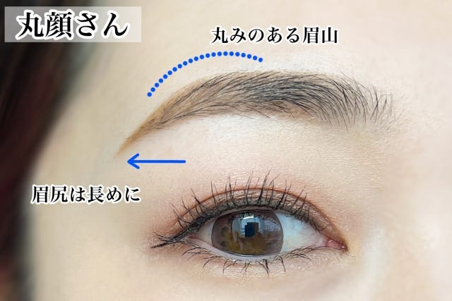丸顔さんは眉尻を長めに、丸すぎず尖りすぎていない眉山にしましょう!