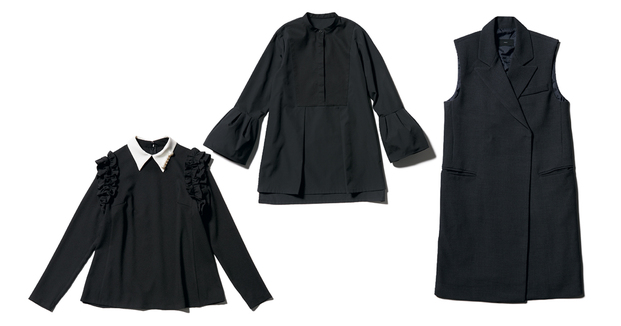 かぶりがちな黒紺ブラウスでも埋もれない一枚が見つかるので毎シーズンチェック。