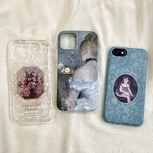 「iPhoneケース」は、ドレス姿の女性が描かれた『ベルト・モリゾ/化粧室の女性』、クリアケースの『クロード・モネ/菊』他、全3種類で展開。