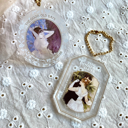 2種類から選べる「アクリルキーホルダー」は、『エドガー・ドガ/Dancer in her dressing room』と、『ピエール=オーギュスト・ルノワール/都会のダンス』の作品が楽しめます。