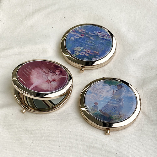 優美な気分でメイクチェックできる「コンパクトミラー」には、『エドガー・ドガ/舞台の踊り子』、『クロード・モネ/散歩、日傘をさす女』などがそれぞれデザインされていますよ。