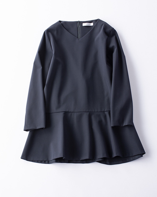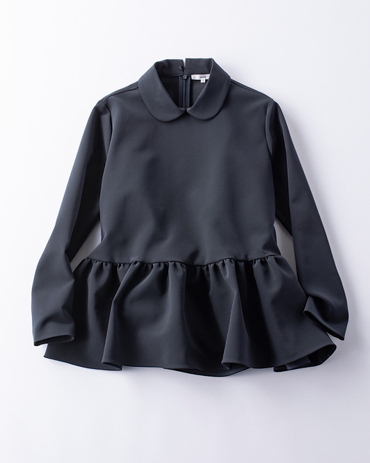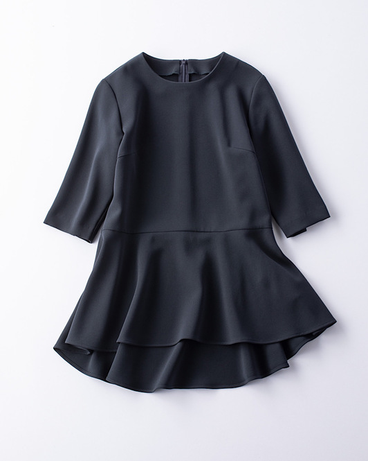 お尻がすっぽり隠れるペプラムブラウス。ボリューミィな裾のおかげで、シンプルなスティックパンツ合わせでもエレガントな印象に。ハリがありつつ、タテヨコともにストレッチが効いていて、ストレスフリーに着こなせます。ブラウス¥27,500(yori)