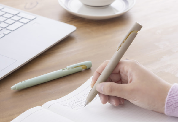 「ブレン」は独自開発の機構によって、従来のボールペンでは筆記時に紙とペン先が接触すると発生していた振動(ブレ)を制御することで、「ストレスフリーな書き心地」を実現した新しいボールペンです。