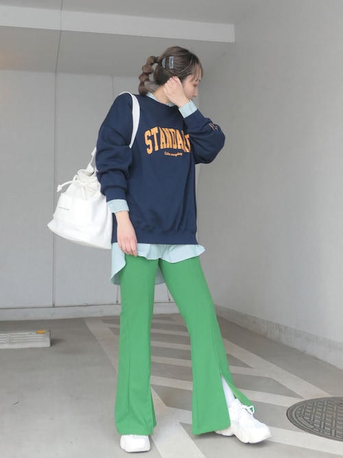 定番のカラーやデザインを持っている方なら、ボリュームスリーブやバックデザインが凝っているものもおすすめ。カラーパンツに合わせるだけで、春らしい爽やかスタイルの完成です!
