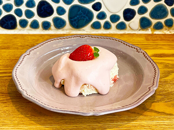「ムー」を使った『苺ティラミス』(税込650円)は、エスプレッソの代わりに苺シロップとあんずのお酒を染み込ませたオリジナル。