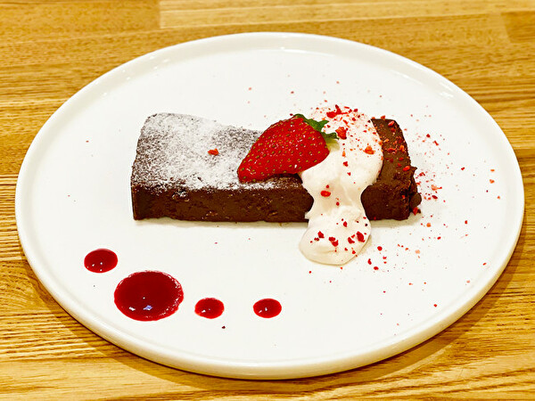 ビターで濃厚なチョコレートチーズケーキも苺仕立てで登場。