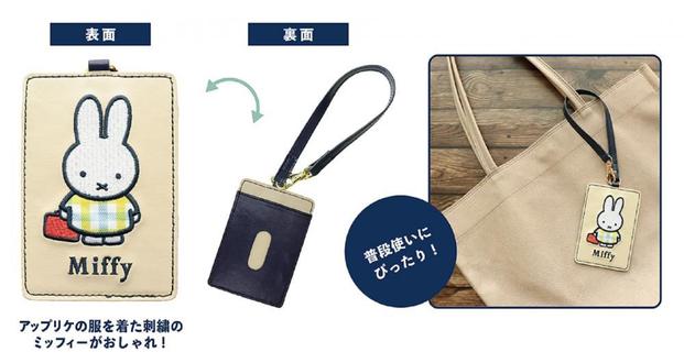 「パスケース」は、ストラップが付いた、ベージュ×ネイビーのツートーンカラー。バッグの持ち手に付けることができて便利ですよ。刺繍のミッフィーもとってもキュート。本体サイズは約W75×H110mm。価格は850円。