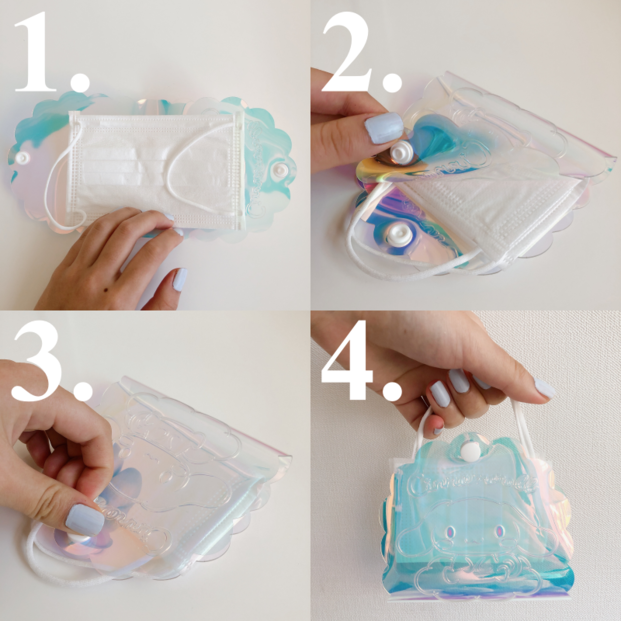 使い方は超簡単!切り込みにマスク紐をギュッと差し込めばOK。