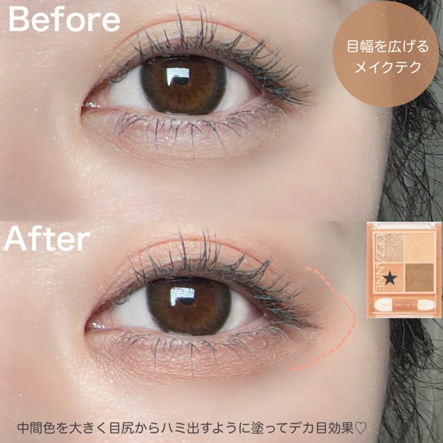 アイシャドウの塗る範囲を少し変えるだけで、目幅が広く見えますよ♡