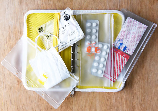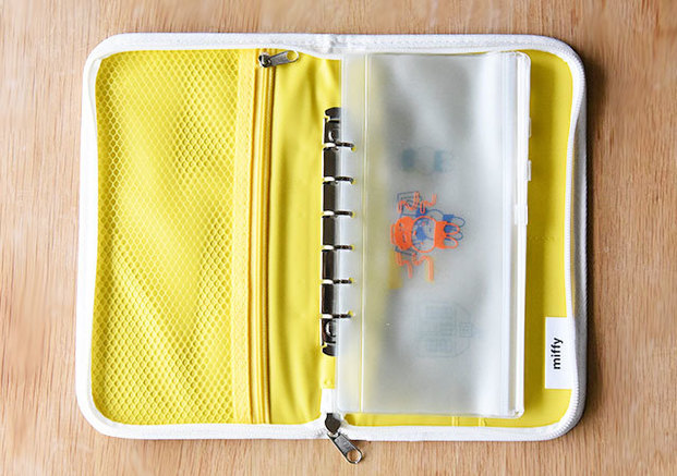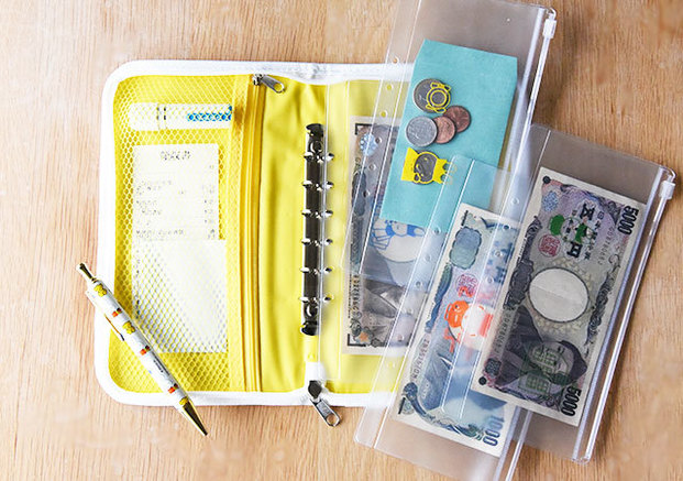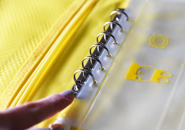 多機能マルチポーチは6穴バインダーになっていて4つのファスナー付きクリアポケットが付いています。