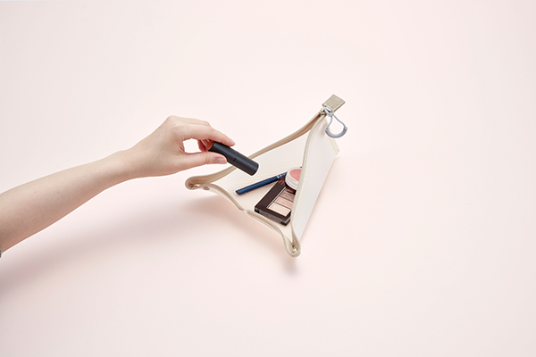 平面ポーチが立体的なマイスペースに早変わり/「トライフルポーチ」