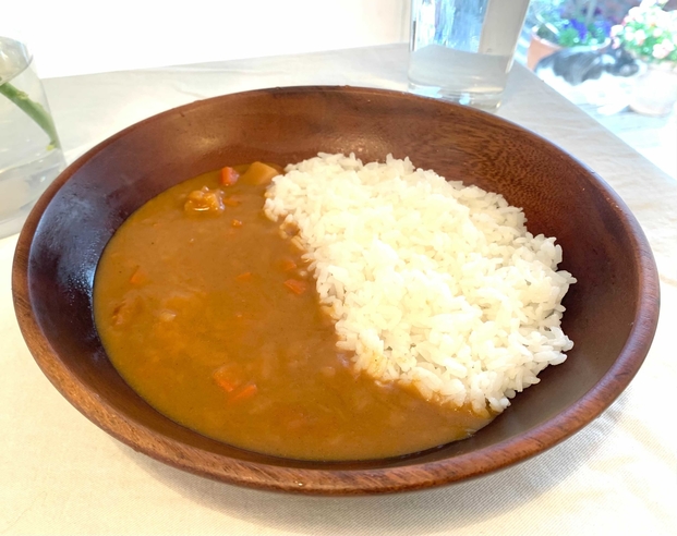 じゃ〜ん!まずはよく食べるカレーライスを盛りつけてみた。