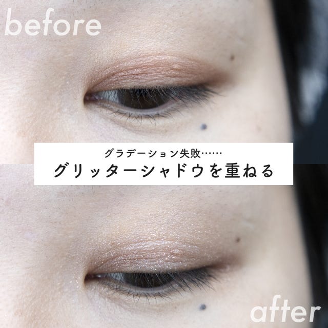 特に色がついていないグリッターシャドウを重ねるだけで、上の画像のようにこんなに変わるのは驚きですよね。