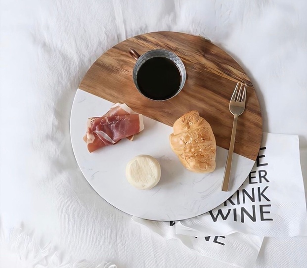 天然大理石とアカシアの木を組み合わせて作られたこのプレート。ピンチョスをのせたり、モーニングプレートとしても映え確実!韓国インテリアがそのままプレートになったようなおしゃれなデザインです。