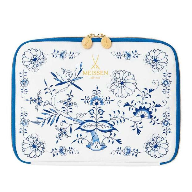 付録は、マイセンの代表作である「ブルーオニオン柄」をプリントしたポーチです。サイズはおよそで幅27×高さ20.5×奥行1.5cmで、10個のポケットが付いています。文具などの小物収納だけでなく、バッグインバッグとしても使えます。