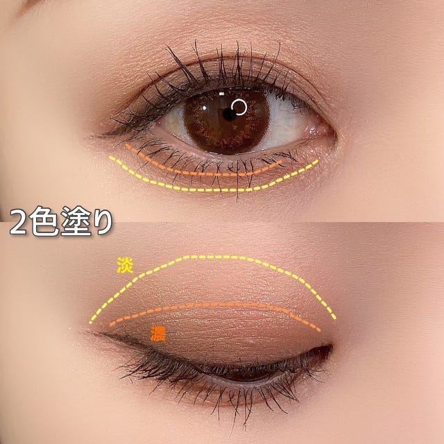 2色使ってアイメイクをする時は、シェードカラーとハイライトカラーで簡単に立体感を出すことができます。