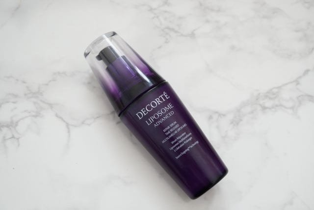 今回使ったのは、コスメデコルテ「リポソーム アドバンスト リペアセラム」(75ml 税込16,500円)。美容成分を贅沢に包んだ超微細なマイクロカプセルが1滴に1兆個も入っており、ハリ・ツヤを求める方から高く支持される人気の導入美容液です。